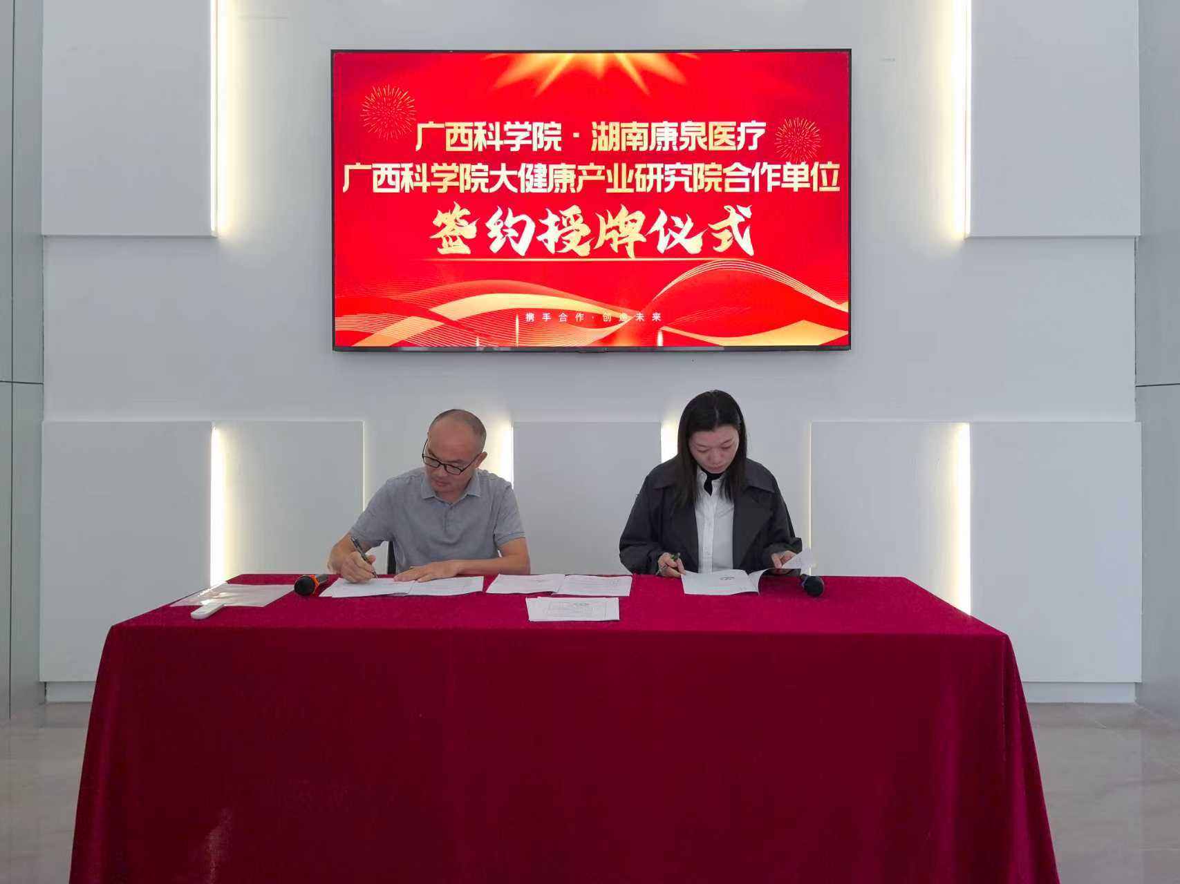 近日,湖南康泉医疗迎来发展历程中的重要时刻 ——2025年10月16日,广西科学院大健康产业研究院李然副院长一行莅临我司,与我司正式签署合作协议,并授予 “广西科学院大健康产业研究院合作单位” 牌匾。